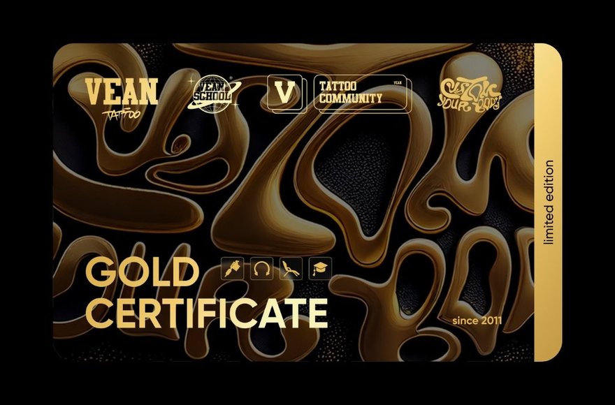 1* Universal gift certificates are available at all VEAN TATTOO studios. 2* Electronic certificates are available via the VEAN TATTOO app and the personal account.