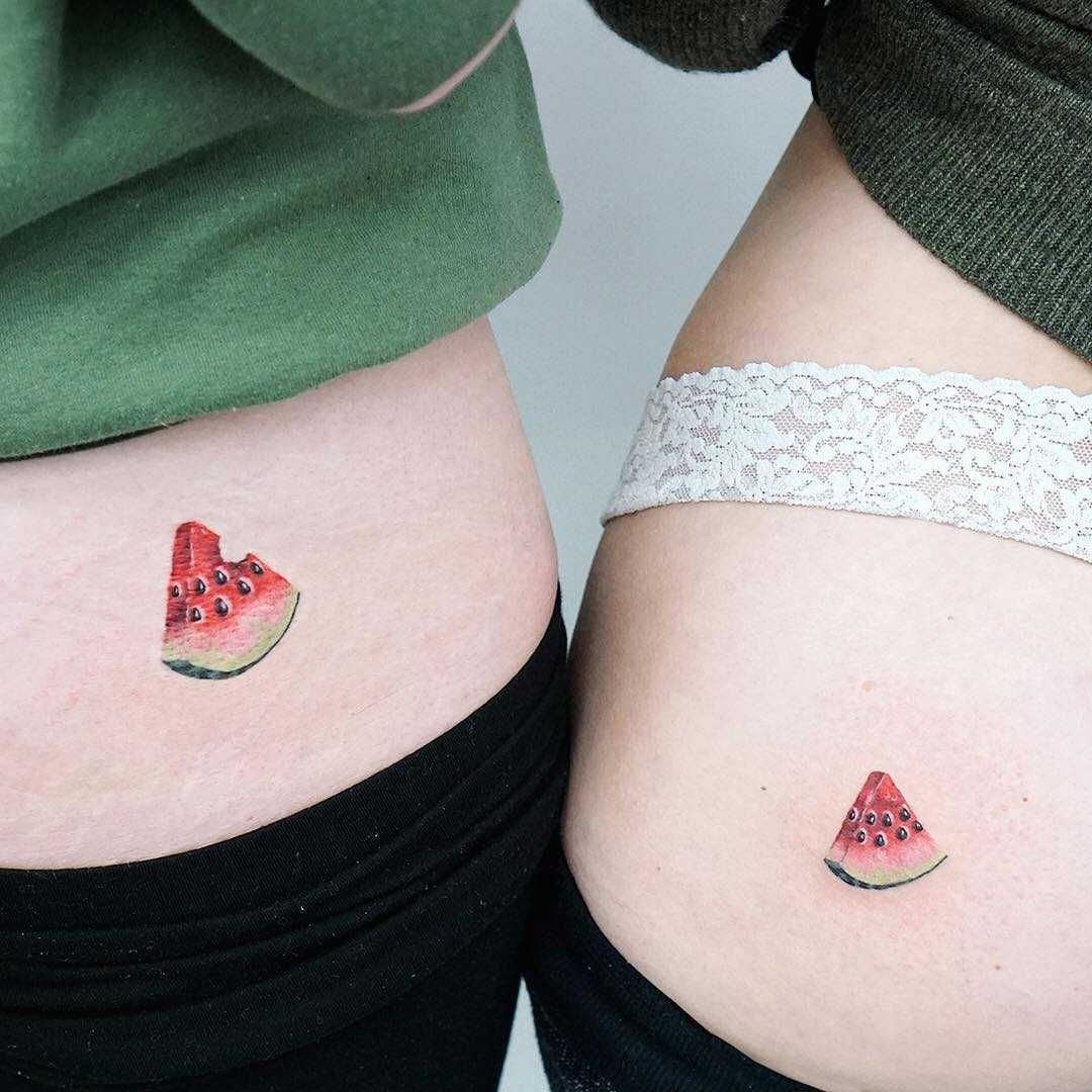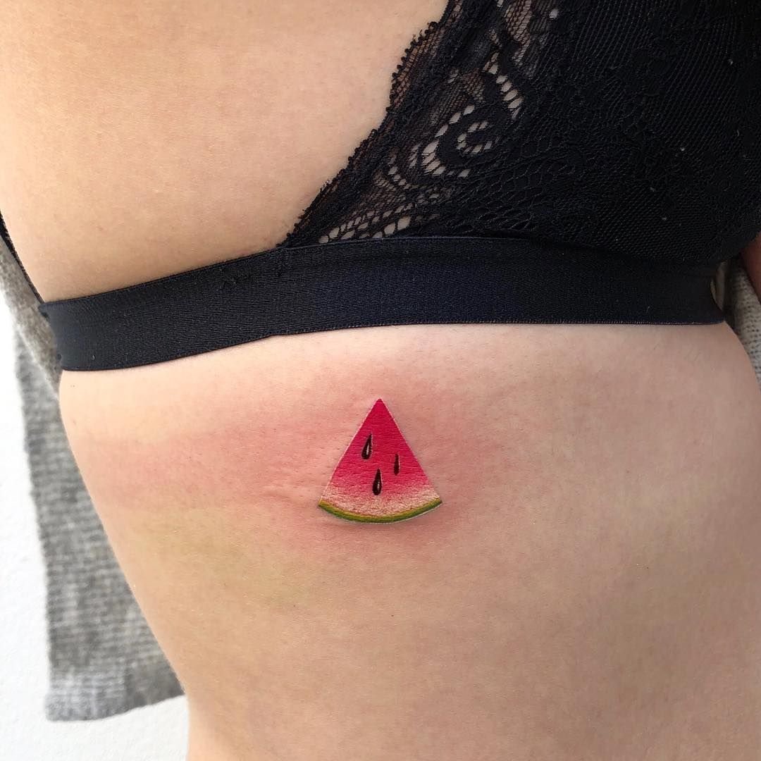 Tatuaże w formie arbuza mogą powiedzieć, że dziewczyna podkreśla swoją naturalną i piekną młodość.