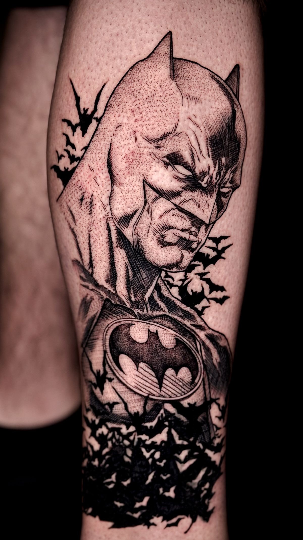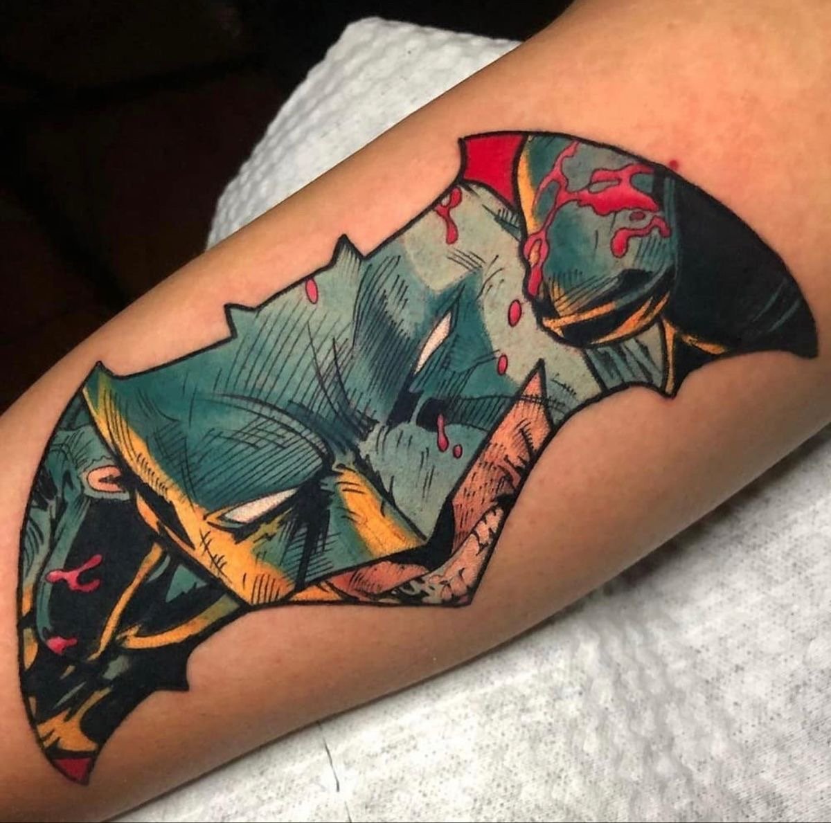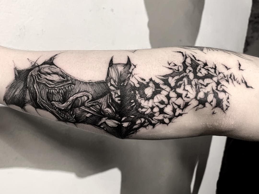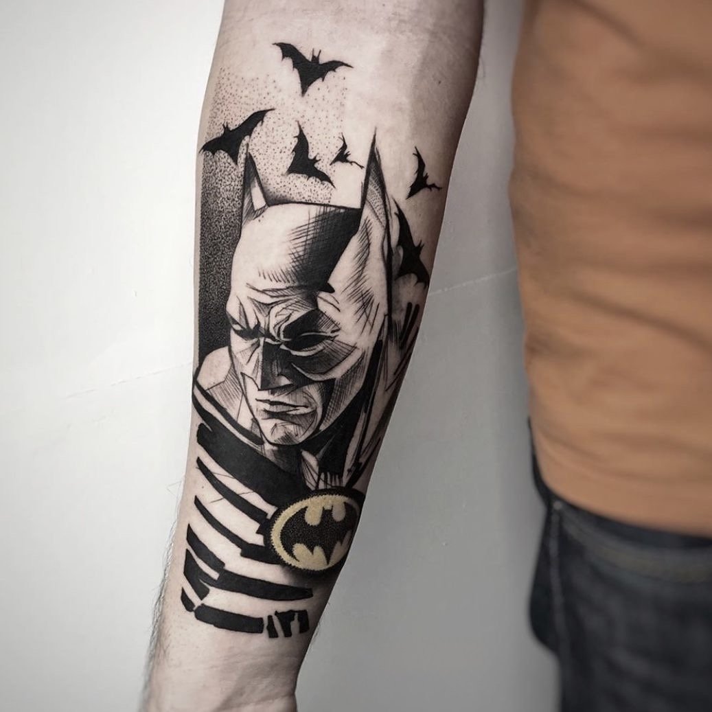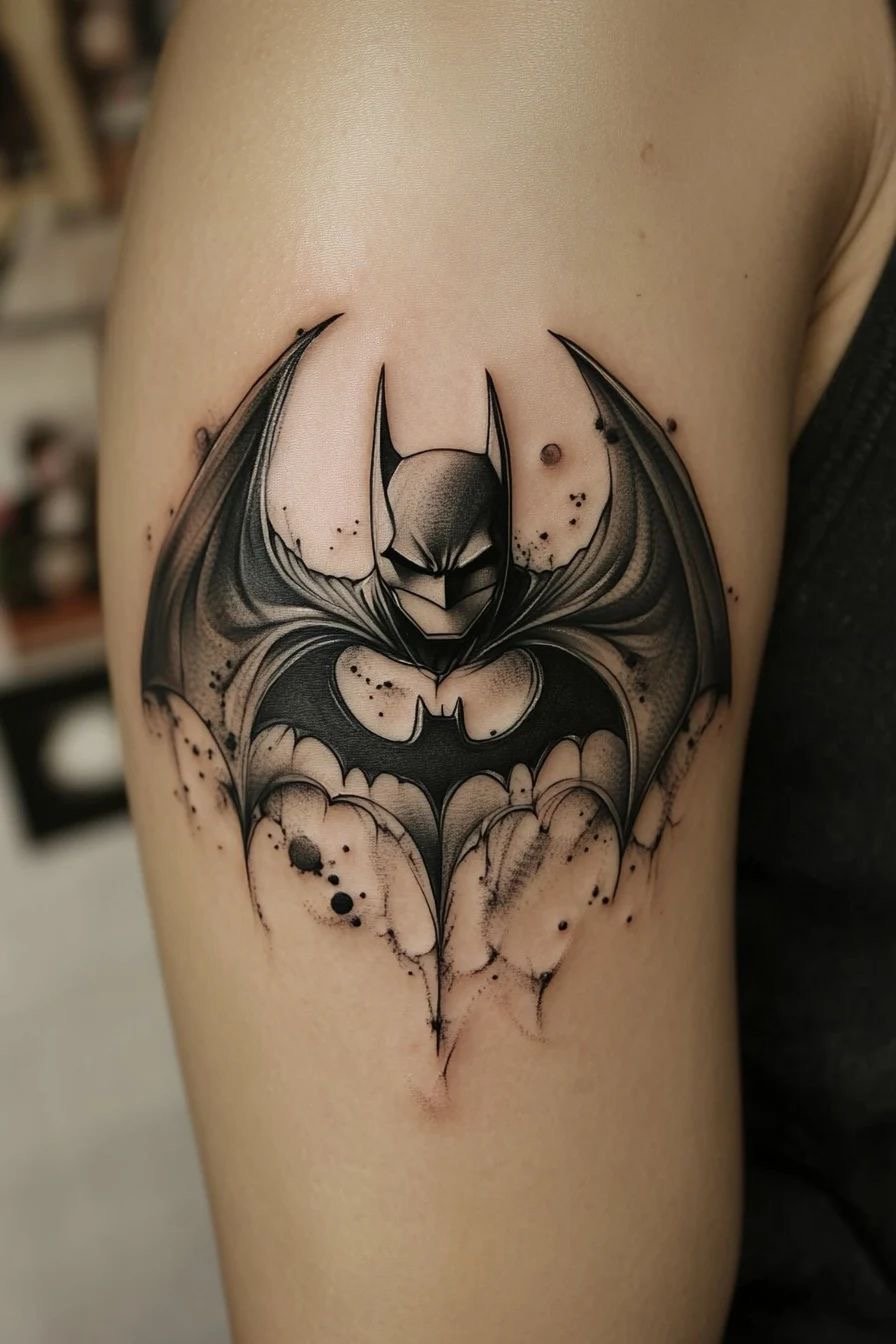 Tatuaż Batmana można wykonać w wielu stylach – od klasycznego logo nietoperza, przez realistyczne portrety, po graficzne kompozycje.