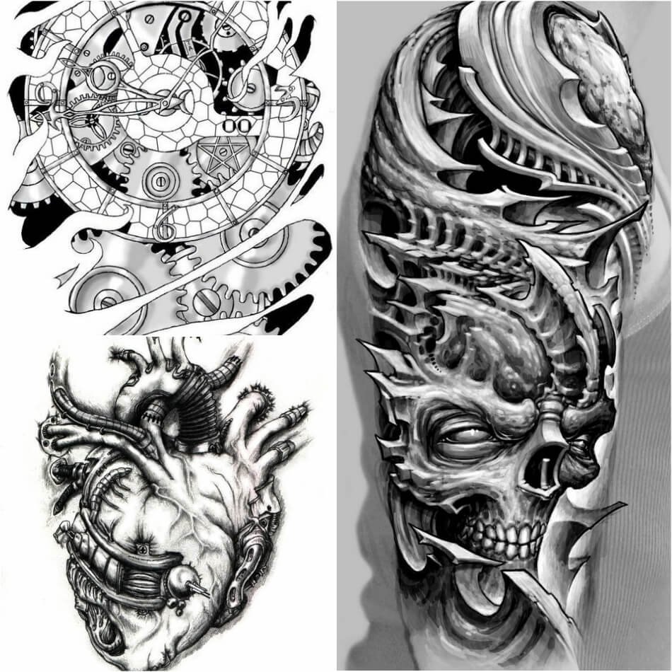 Szkice tatuaży biomechaniki są pośrednimi kopiami dzieł Hansa Gigera. To znany szwajcarski artysta, jego prace są znane wszystkim. Nawet jeśli ktoś nie widział jego obrazów na żywo, bez żadnych wątpliwości prawie wszyscy widzieli film „Obcy”, w którym Hans Giger stworzył wizerunek mechanicznych «obcych".