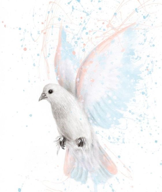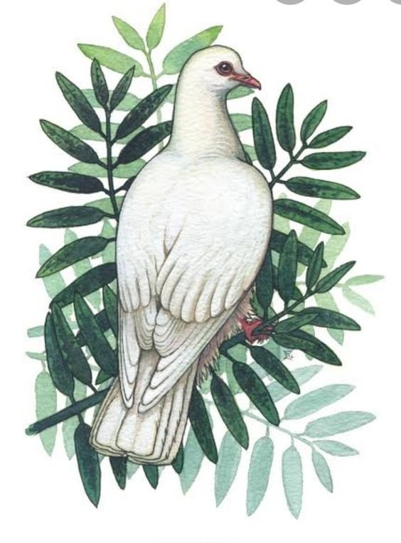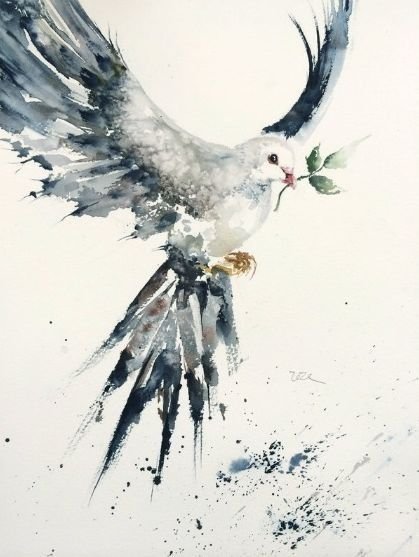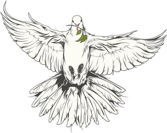 Gołąb trzymający gałązkę oliwną oznacza jasną nadzieję.