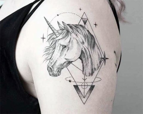 Podobnie jak jednorożec, tatuaż z jego wizerunkiem ma specjalne oznaczenie. Zarówno chłopaki, jak i dziewczyny wybierają go na tatuaż, ale obraz ten nadal bardziej popularny wśród płci żeńskiej. Według legendy jednorożec jest dzikim nieokiełznanym stworzeniem, które może poddać się tylko niewinnym dziewicom. Na tej podstawie dziewczyny kojarzą tatuaż jednorożca z dobrocią, czystością, niewinnością, a także magią.