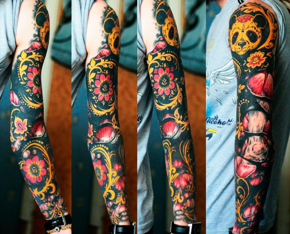 Na małych obszarach trudno będzie przeanalizować obraz i zrozumieć, jakie oznaczenie nosi tatuaż. Wzory Khokhloma na małych obszarach pozostaną jedynie wzorami, ale obszerny, kolorowy obraz, w którym widoczny jest kontrast między wszystkimi jego kolorami, tak wygląda prawdziwa Khokhloma. Wybierając miejsce do zrobienia tatuażu, zwróć uwagę na rozmiar samego tatuażu. Ponieważ Khokhloma wymaga dużej przestrzeni, do tego tatuażu wybierają takie części ciała: ramię, przedramię, cały obszar ramienia, biodra, plecy, nogi. Styl Khokhloma będzie wyglądał równie imponująco i oryginalnie zarówno na kobiecym, jak i męskim ciele.