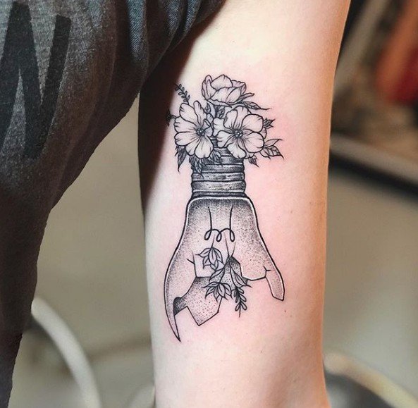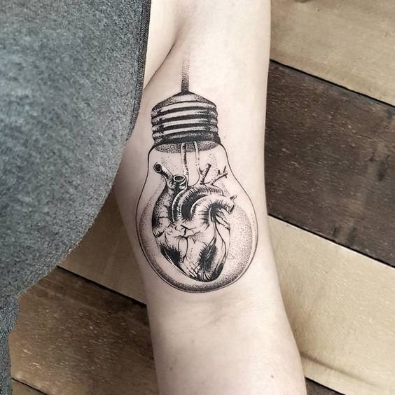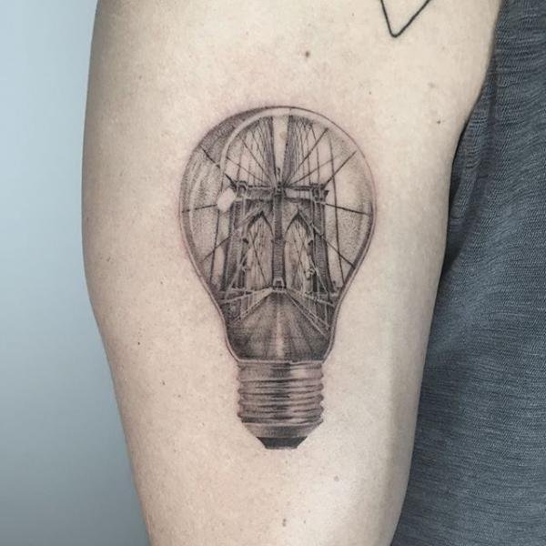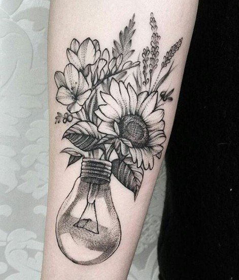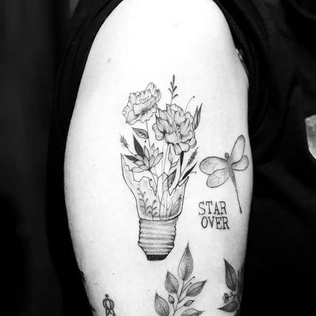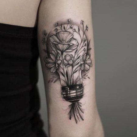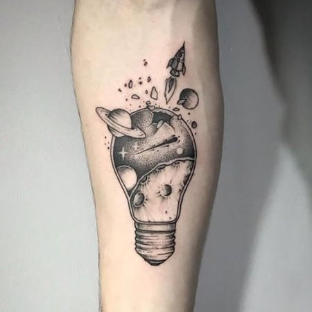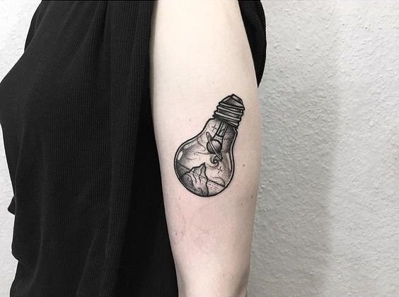 Oświecenie to moment, w którym człowiek zdobywa nową wiedzę, a jako specjalista w swojej dziedzinie, podkreśla to ciekawym tatuażem z motywem lampy. Oświecony umysł człowieka będzie generował nowe idee, oświetlając ścieżkę i omijając ciemność. Lampa lub żarówka wskaże wybraną przez niego drogę.