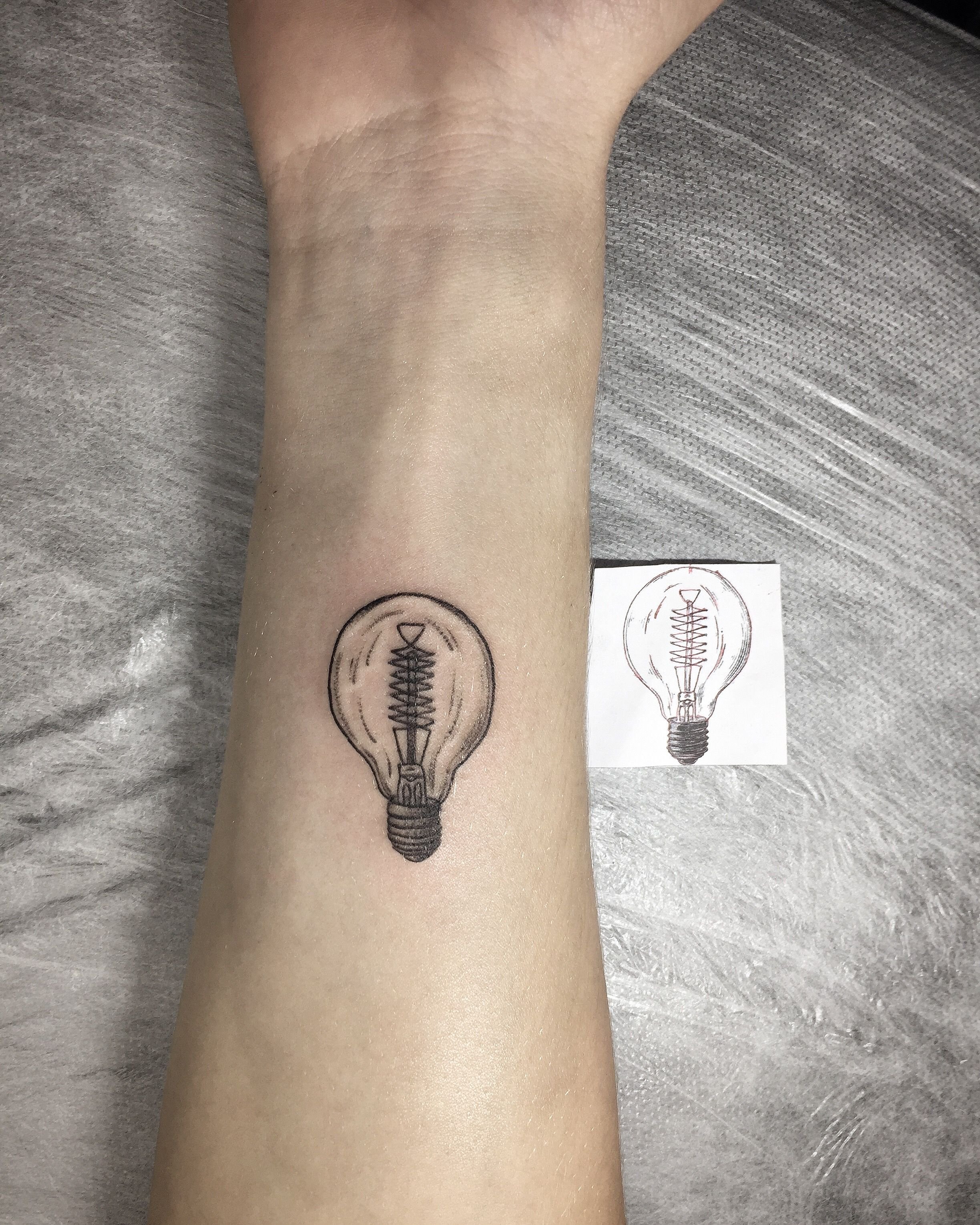 Tatuaż lampy można wyraźnie przypisać do uniwersalnego.