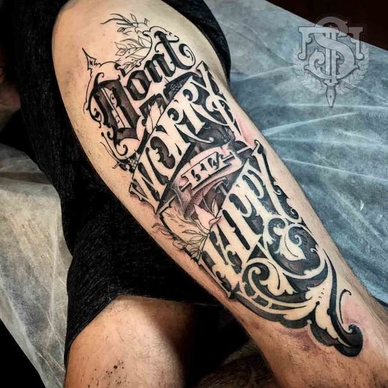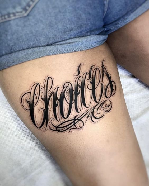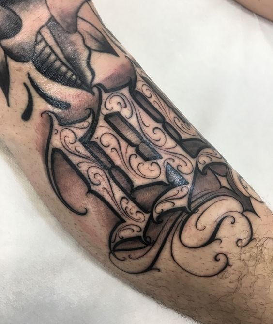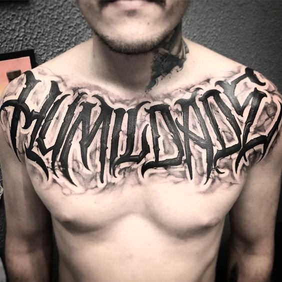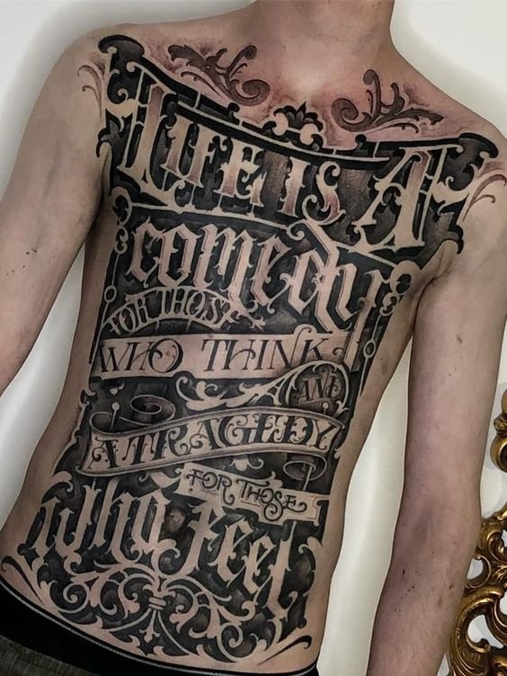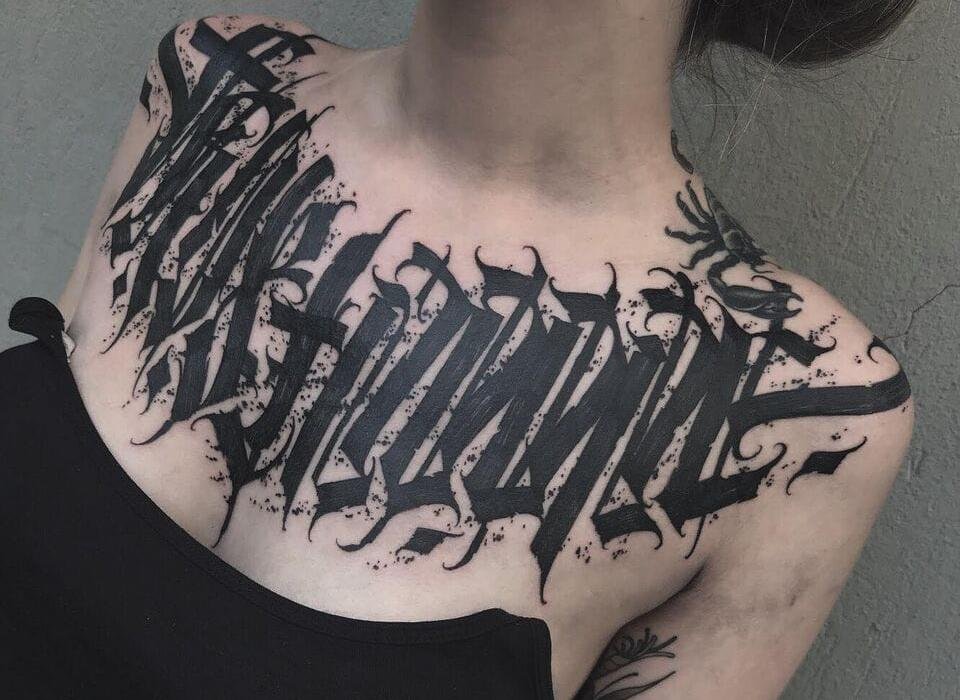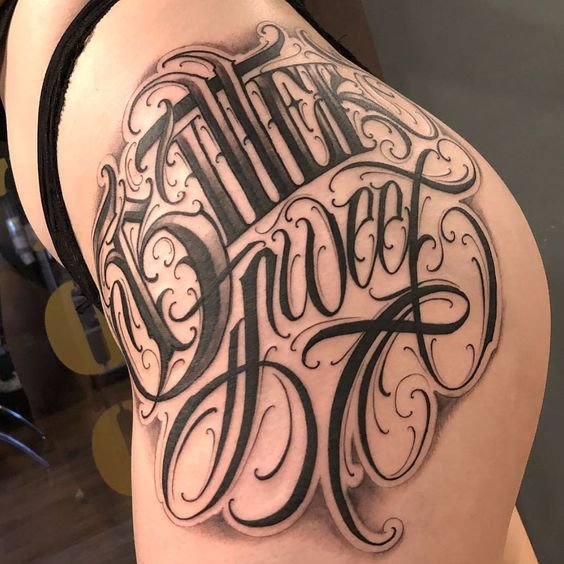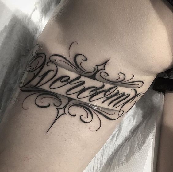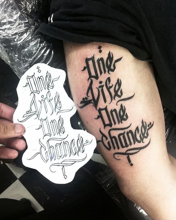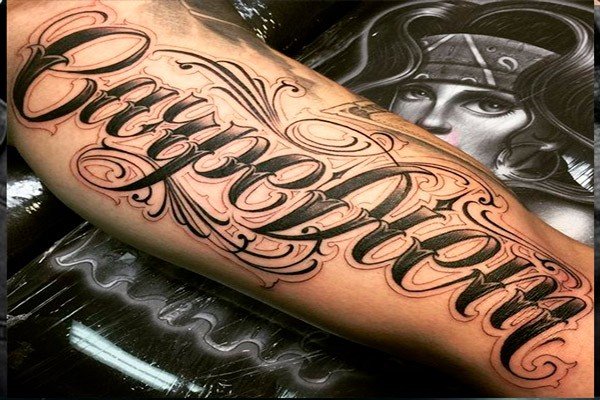 Dla niej nie musisz wybierać specjalnego miejsca, biorąc pod uwagę budowę ciała, grę mięśni i tak dalej.W tym stylu nie ma granic; w jednym wyrażeniu możesz łączyć dowolną liczbę czcionek. W rezultacie otrzymasz unikalny tatuaż, który będzie ozdobą na ciele.