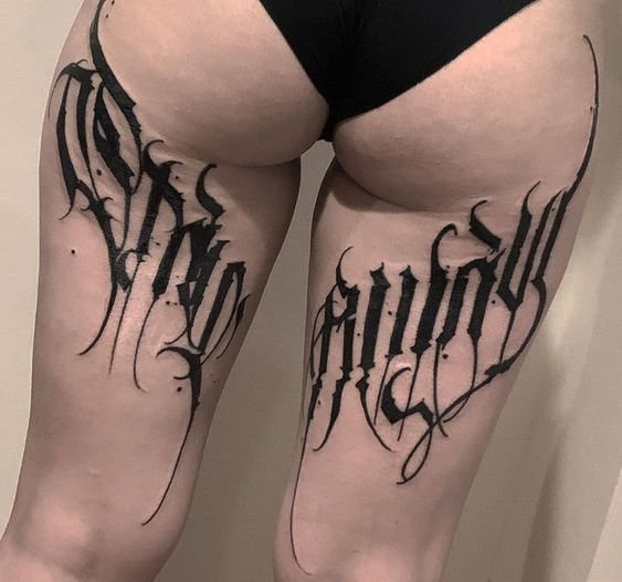Ze względu na rozmaitość czcionek napisy wyglądają spektakularnie nie tylko na kobiecie, ale także na męskim ciele. Kobiety wybierają bardziej wyrafinowane, cienkie czcionki. Mężczyźni wolą bardziej bezczelne, brutalne szkice napisów.