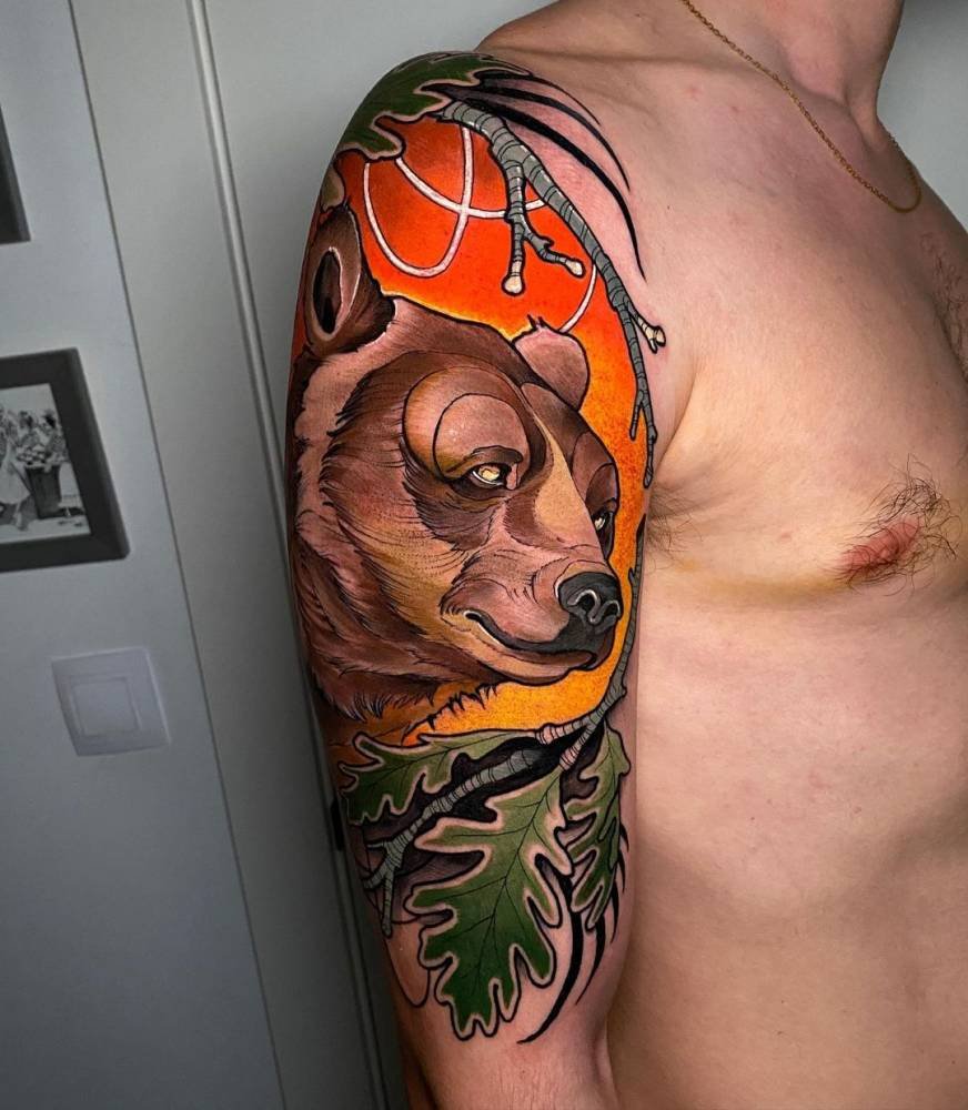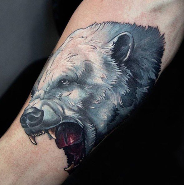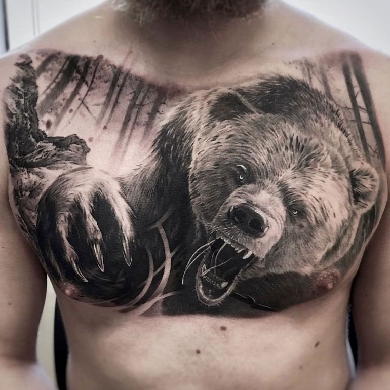 Z natury niedźwiedź jest nieustraszonym oraz wściekłym drapieżnikiem, ma niesamowita moc, przed którą nie można uciec. Ale mimo to niedźwiedź jest życzliwy, czuły, bardzo opiekuńczy, kocha i chroni swoje potomstwo przed wszelkim zagrożeniem. Tatuaż przedstawiający niedźwiedzia jest najczęściej wybierany przez mężczyzn, kobiety rzadziej decydują się na ten tatuaż, dlatego, oczywiście, znaczenia ich będą się różnić.