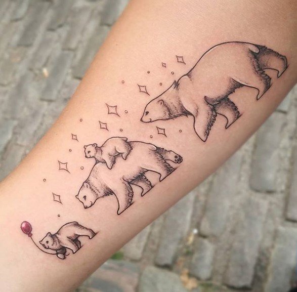 - Obraz młodych lub pluszowego misia. Taki tatuaż niesie ze sobą pozytywne cechy dobroci, ciepła i czułości.