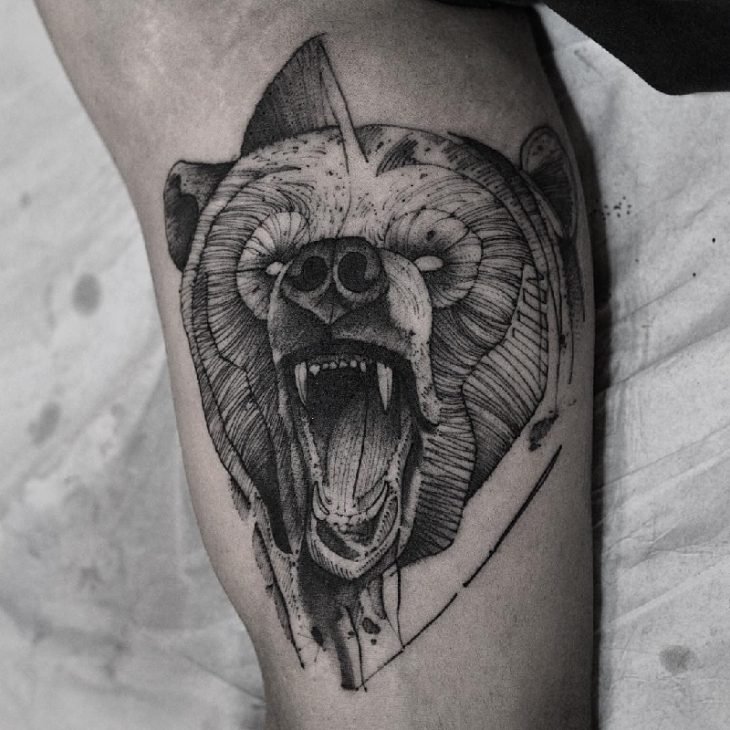 - Tatuaż z obrazem niedźwiedzia grizzly. Ten obraz mówi o zdecydowaniu człowieka, a także o tym, że jest on w stanie poradzić sobie ze wszelkimi trudnościami w życiu, ma uporczywy charakter i potrafi się bronić.