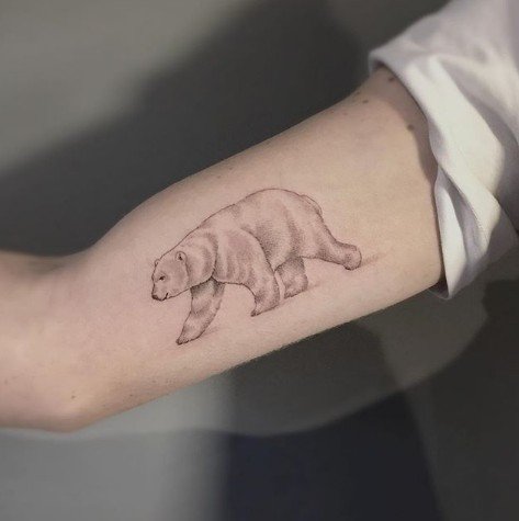 - Niedźwiedź polarny. Taki tatuaż nosi osoba, która kocha życie, nie jest świadoma strachu, a w każdej sytuacji będzie walczyła o swoje życie, jest wytrwała i cierpliwa.