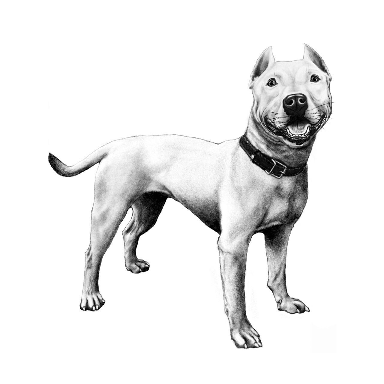 W drugim przypadku nacisk kładziony jest na wzrok i pysk psa, które wyrażają spokój lub agresywną postawę. Z reguły zwierzę jest przedstawiane z przyciętymi uszami i głębokimi zmarszczkami.