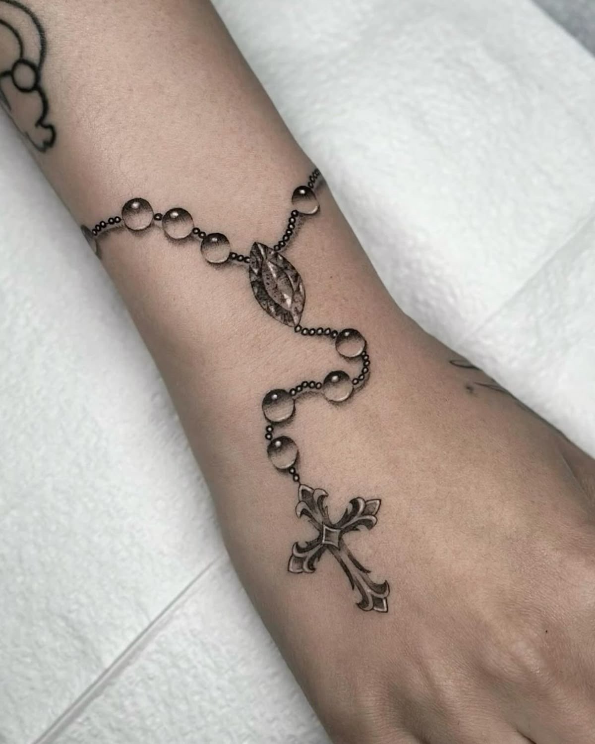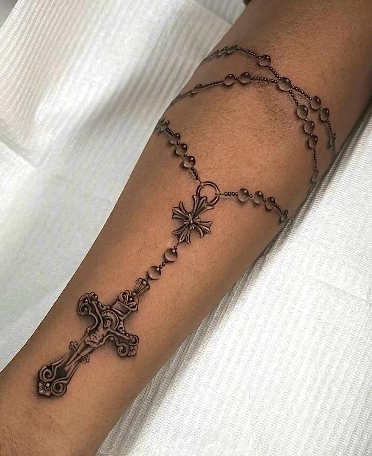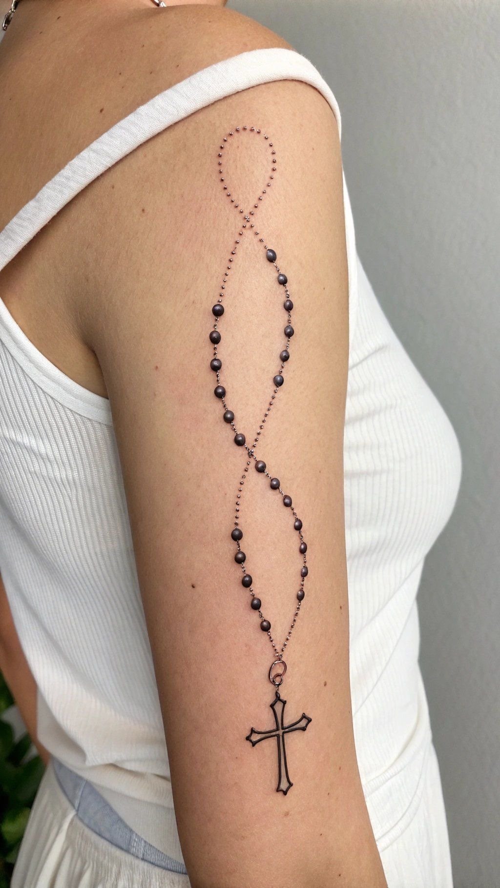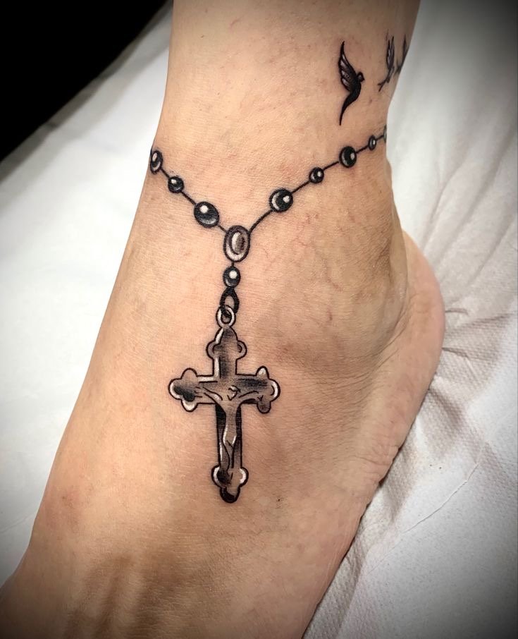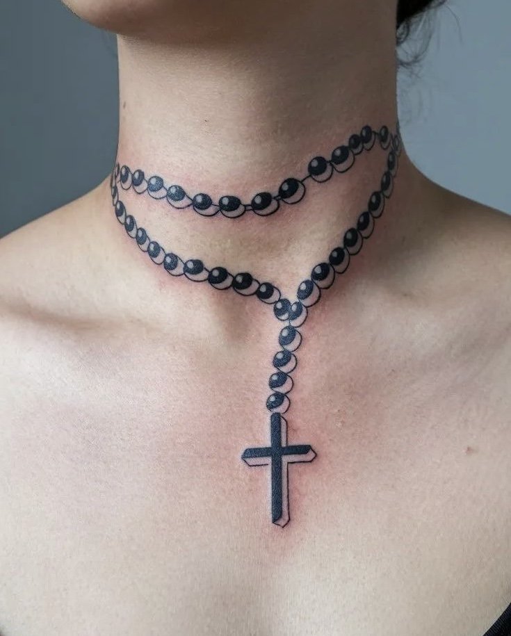 Tatuaż różaniec dla kobiet to przede wszystkim delikatny, ale bardzo silny symbol duchowej więzi z Bogiem.