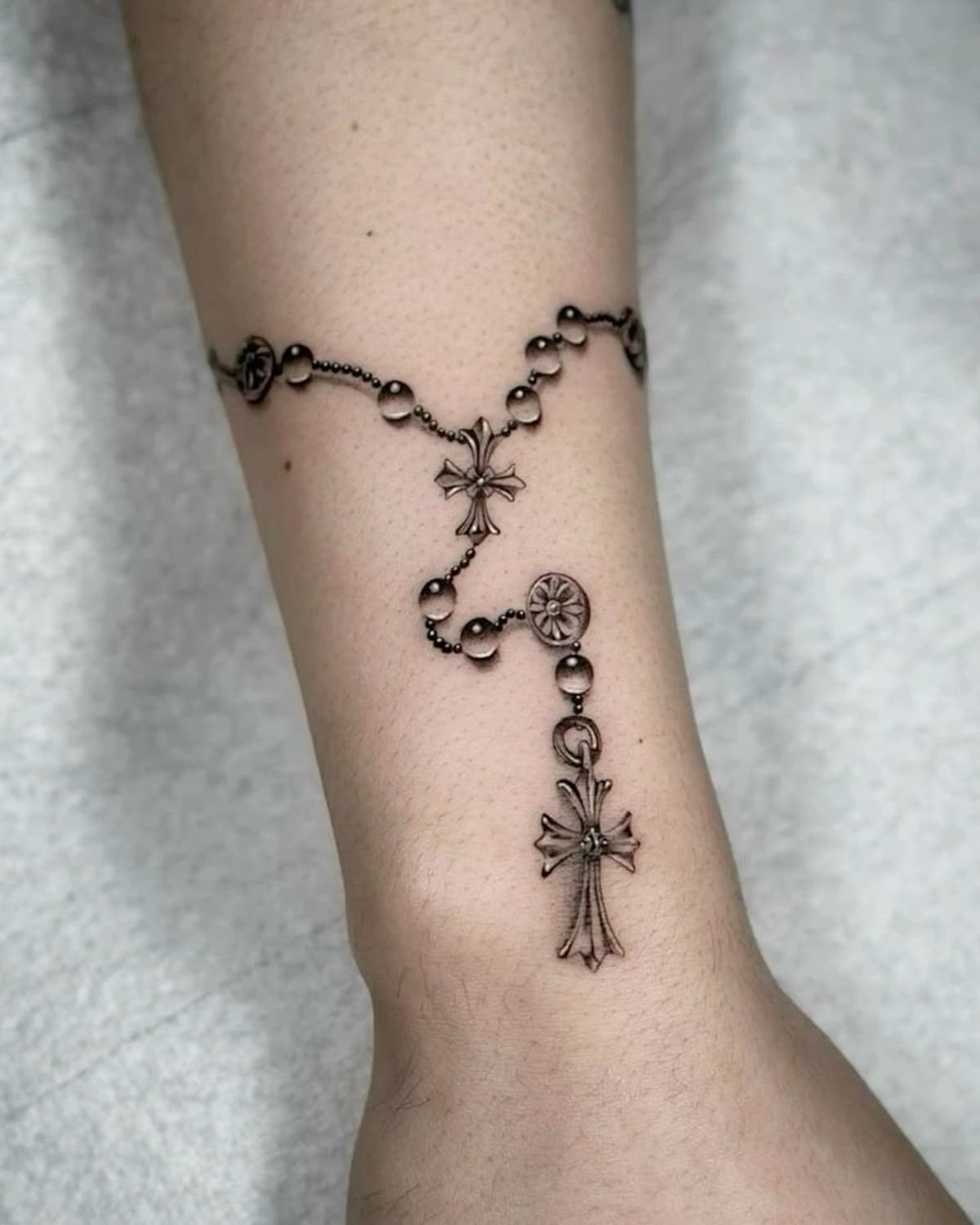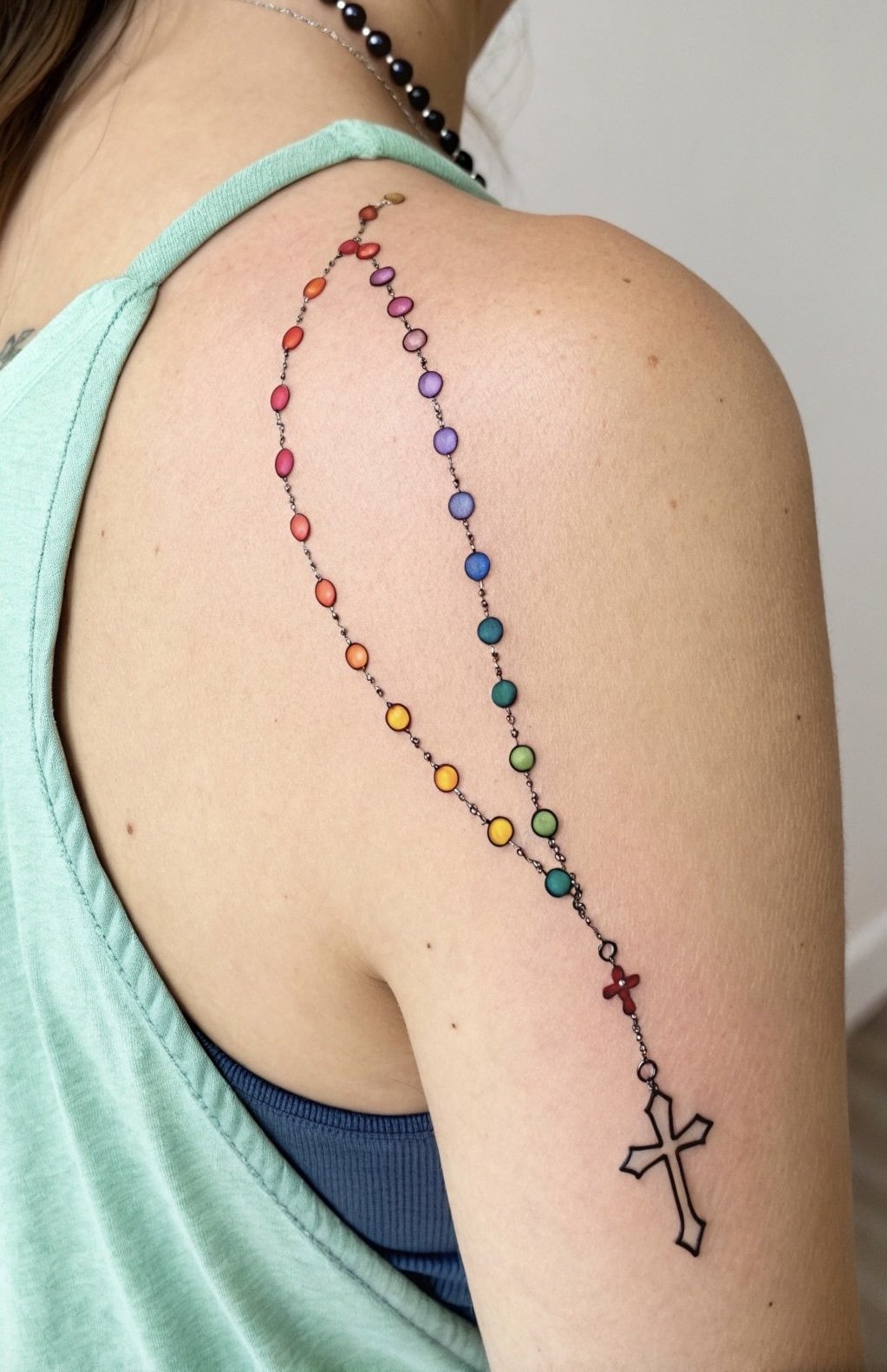 Tatuaż różaniec może być wykonany w różnych stylach, w zależności od tego, jaką rolę ma spełniać – czy ma być subtelnym symbolem, czy mocnym, widocznym znakiem.