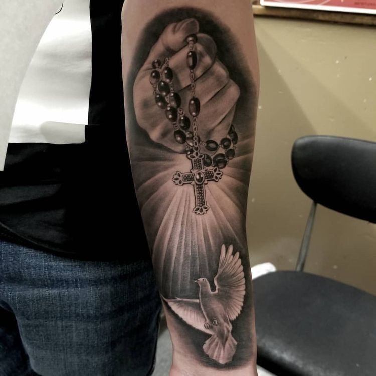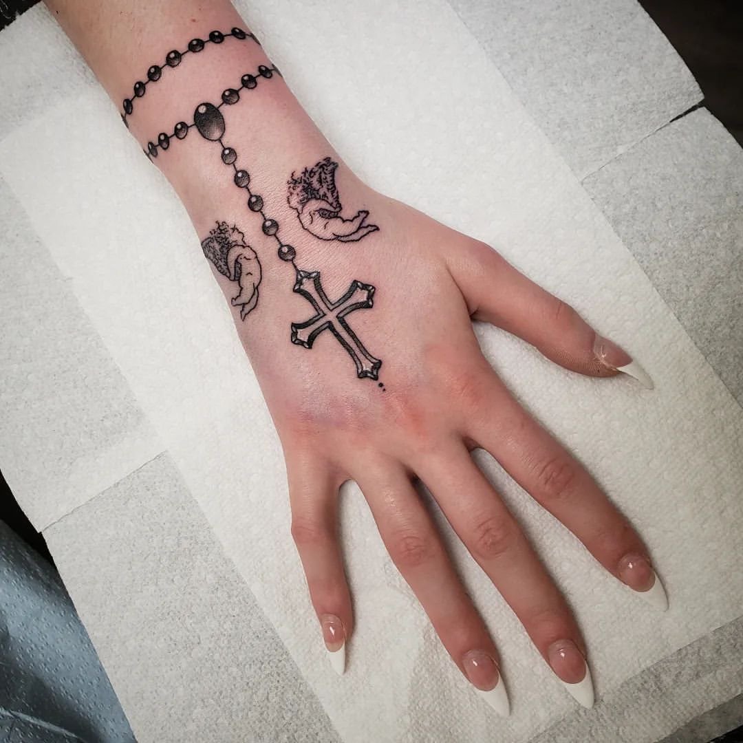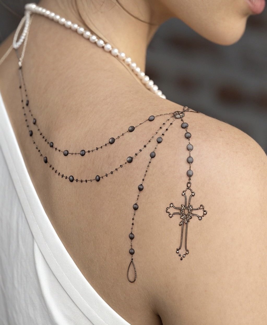 Dla wielu ludzi stanowi nie tylko ozdobę, ale przede wszystkim wyraz silnej wiary, oddania oraz duchowej mocy. Taki wzór może przybierać różne formy – od prostych, dyskretnych projektów po bardziej rozbudowane kompozycje, w których paciorki łączą się z innymi elementami o głębokim znaczeniu. Tatuaż tego rodzaju nierzadko staje się również formą osobistej modlitwy utrwalonej na ciele.
