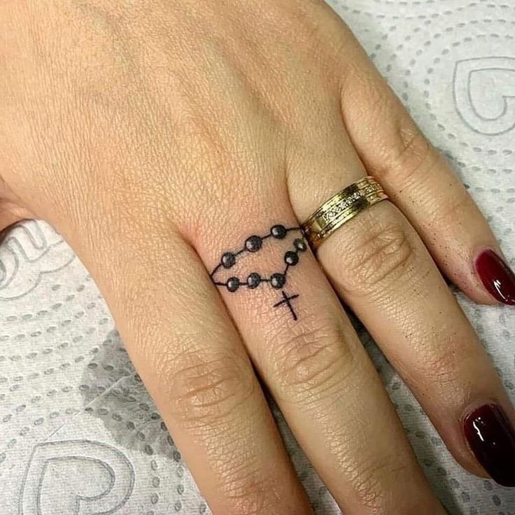 Popularne są wzory przedstawiające klasyczny różaniec oplatający nadgarstek, palec lub przedramię, przypominający prawdziwą koronkę modlitewną. Często dołącza się do niego krzyżyk lub inicjały bliskich, co nadaje mu dodatkowego znaczenia.
