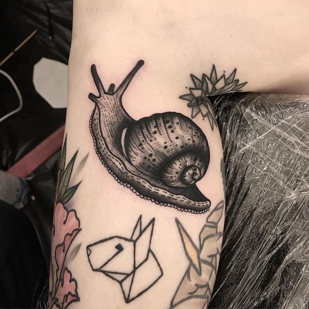 Tatuaż z wizerunkiem ślimaka jest nakładany na ciało niezwykle rzadko.