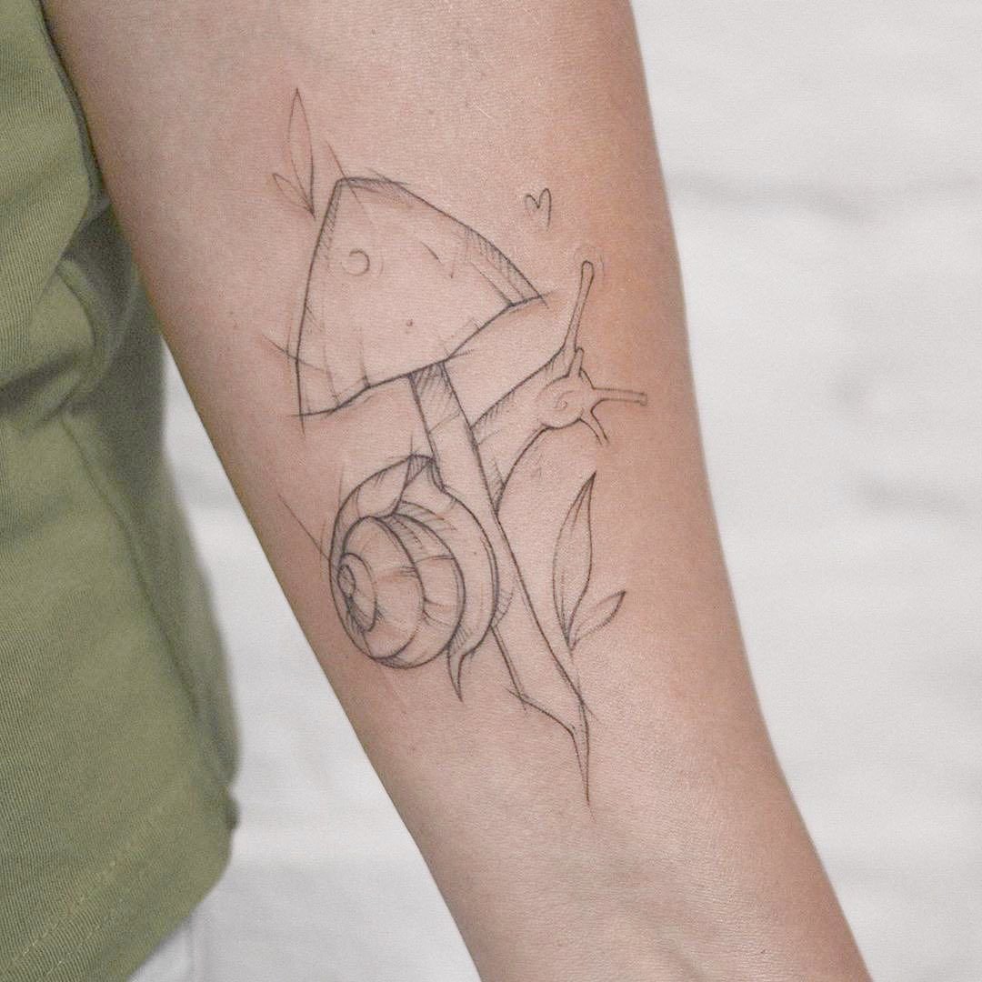 Ten obraz jest pozbawiony należytej uwagi, ale na próżno, ponieważ szkic tatuażu ślimaka ma wiele znaczeń. Od dawna obraz ślimaka jest uważany za pozytywny symbol, a dom, w którym żyje mięczak, symbolizuje rodzaj ochrony. We współczesnym świecie ślimak charakteryzuje się powolnością i obojętnością.