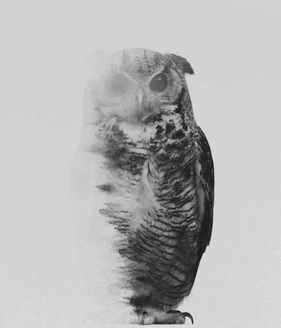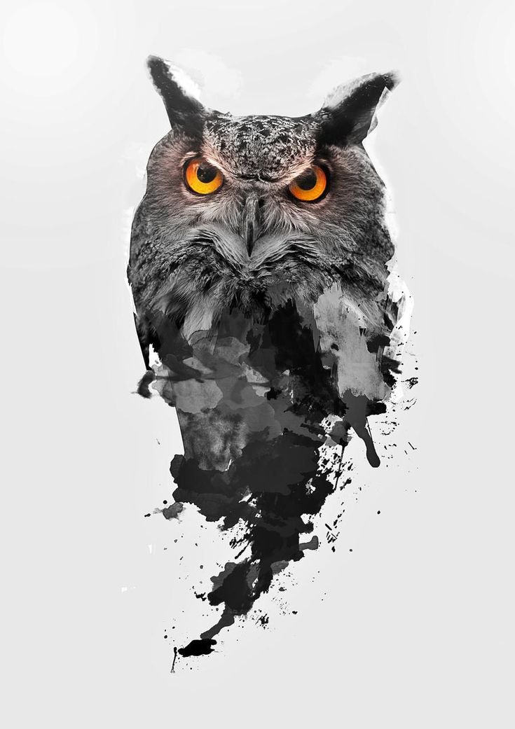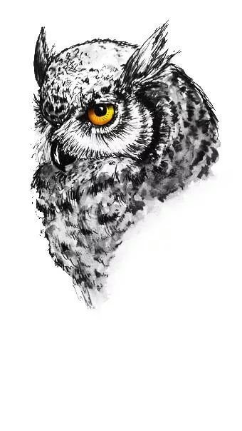 Sowa w czerni i bieli interpretuje spokój człowieka, jego mądre spojrzenie na rzeczy i zdecydowane nastawienie.