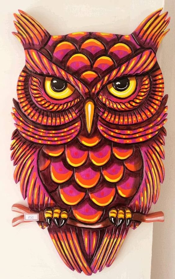 Jasne, kolorowe obrazy sowy mówią o pozytywnym nastawieniu właściciela.