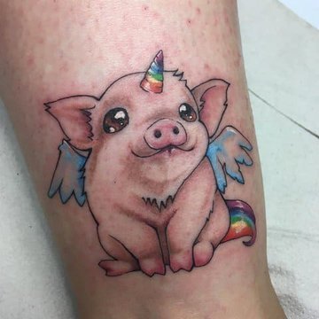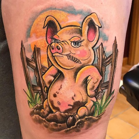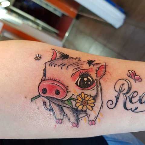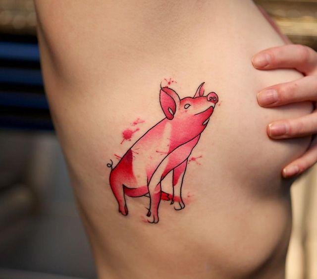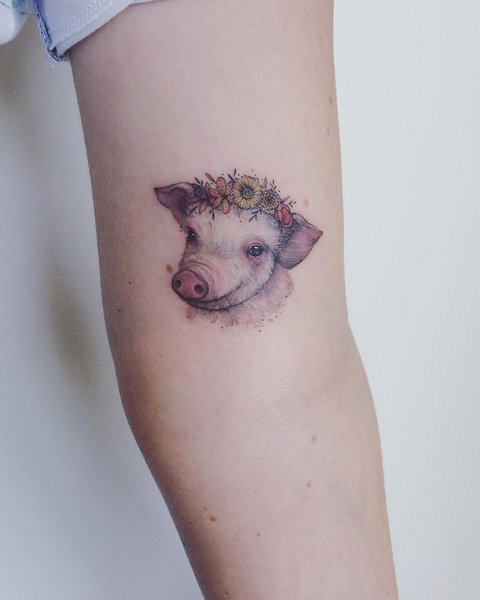 Tatuaż świni jest rzadko używany do przedstawiania na ciele.