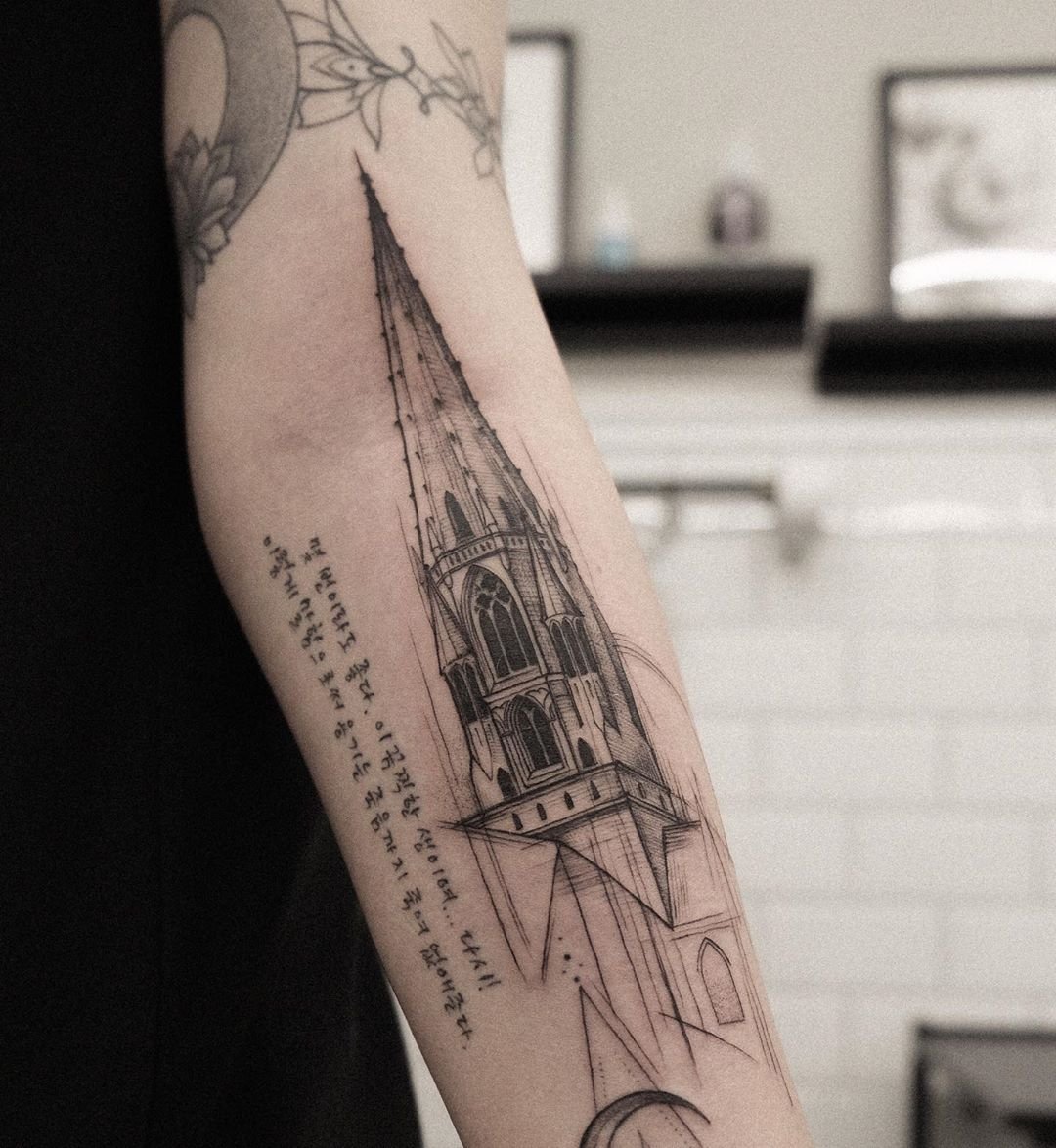 Tatuaż wieża na skórze