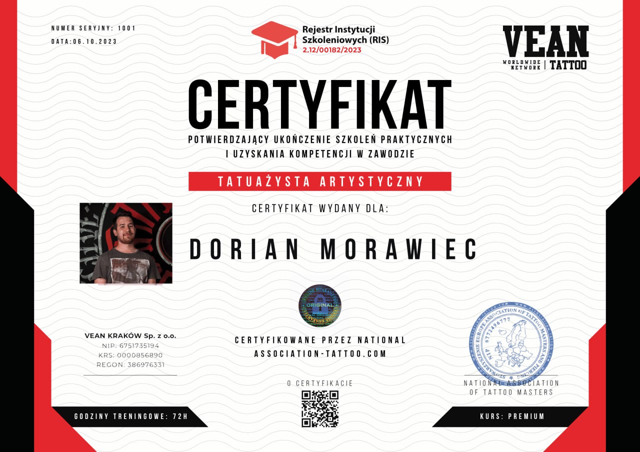 Jestem Dorian Morawiec. Tatuuję ponad 3 lata, a rysuję odkąd pamiętam. Uwielbiam tworzyć ambitne wzory z masą szczegółów. Lubię fantastykę, jeżdżę na deskorolce, słucham mocnej muzyki i interesuje się psychologią, ludologią. Zapraszam do mnie na tatuaż :)
