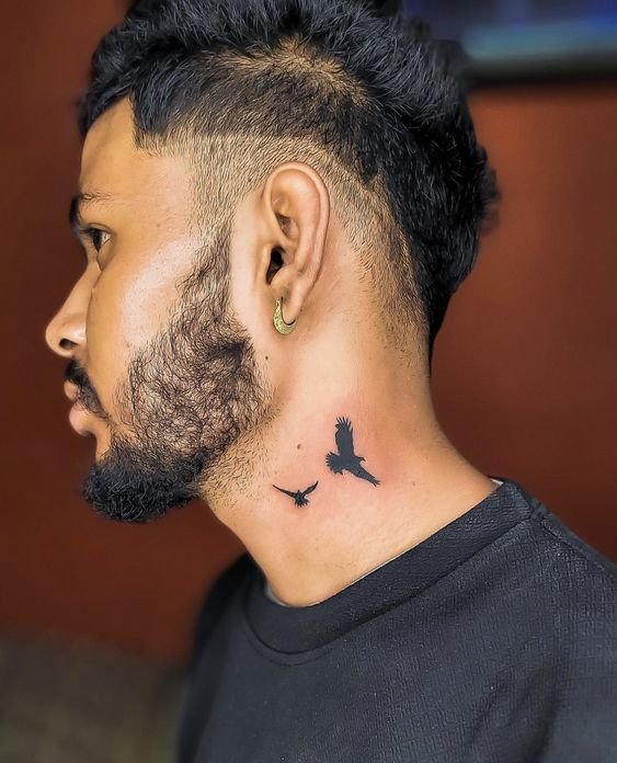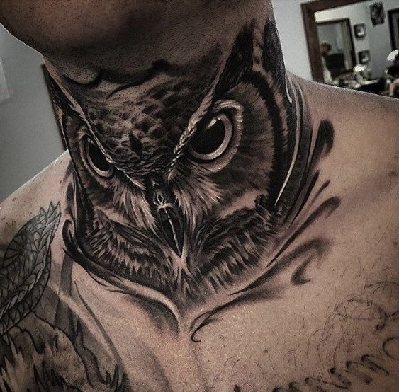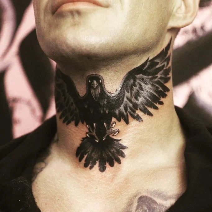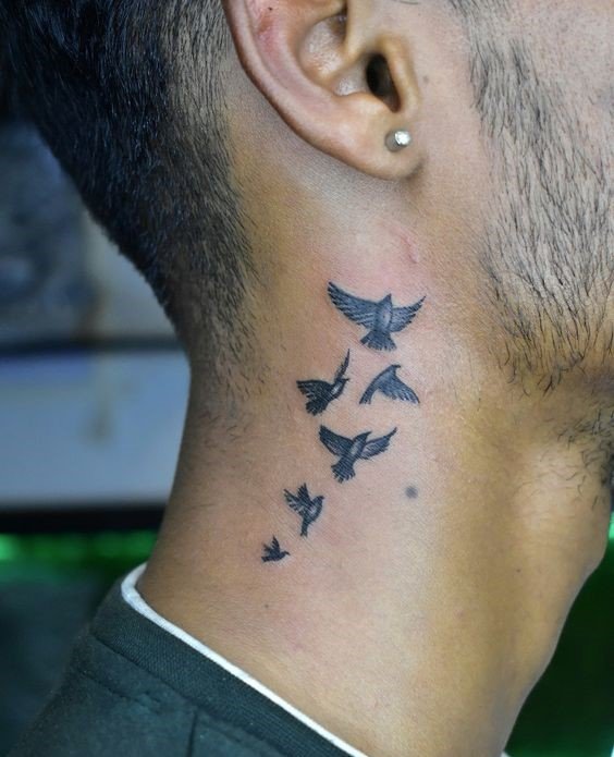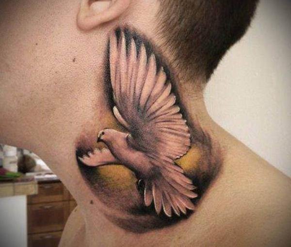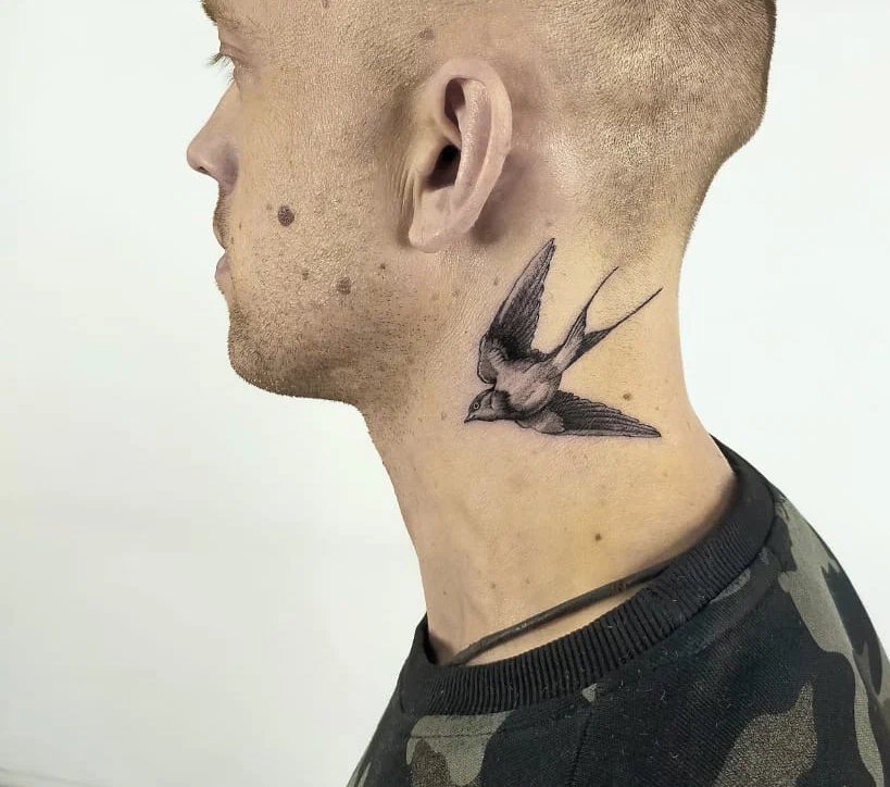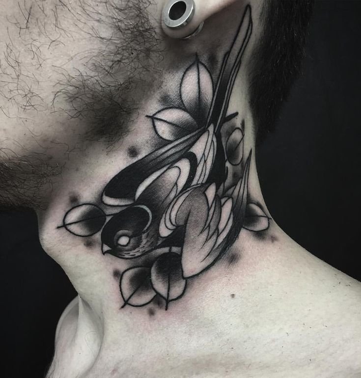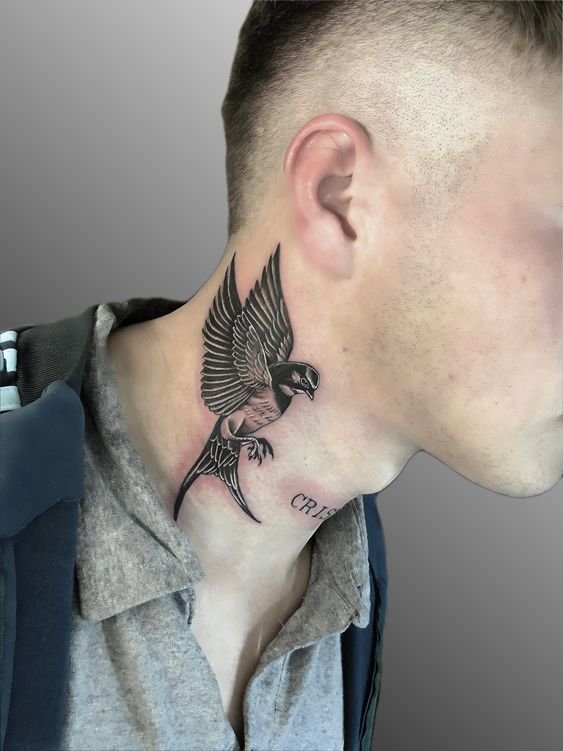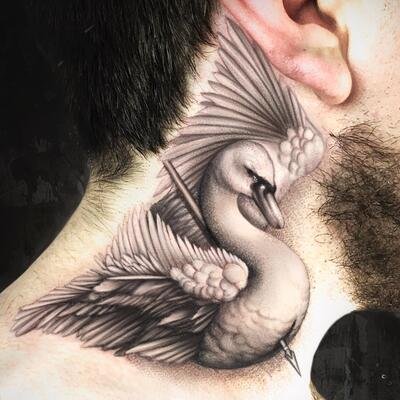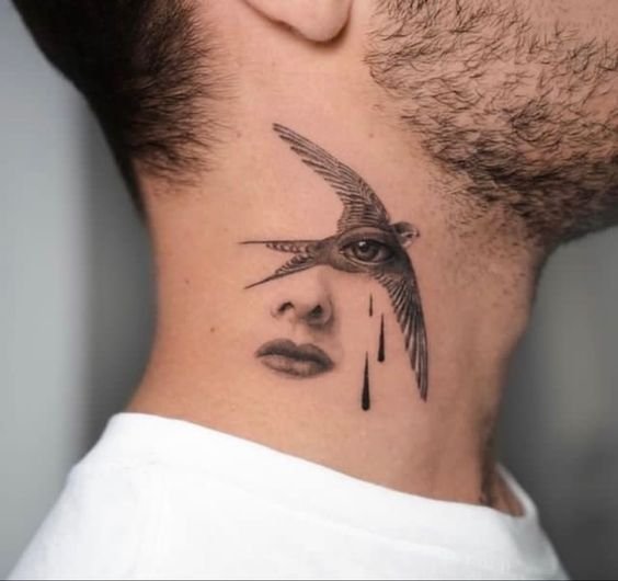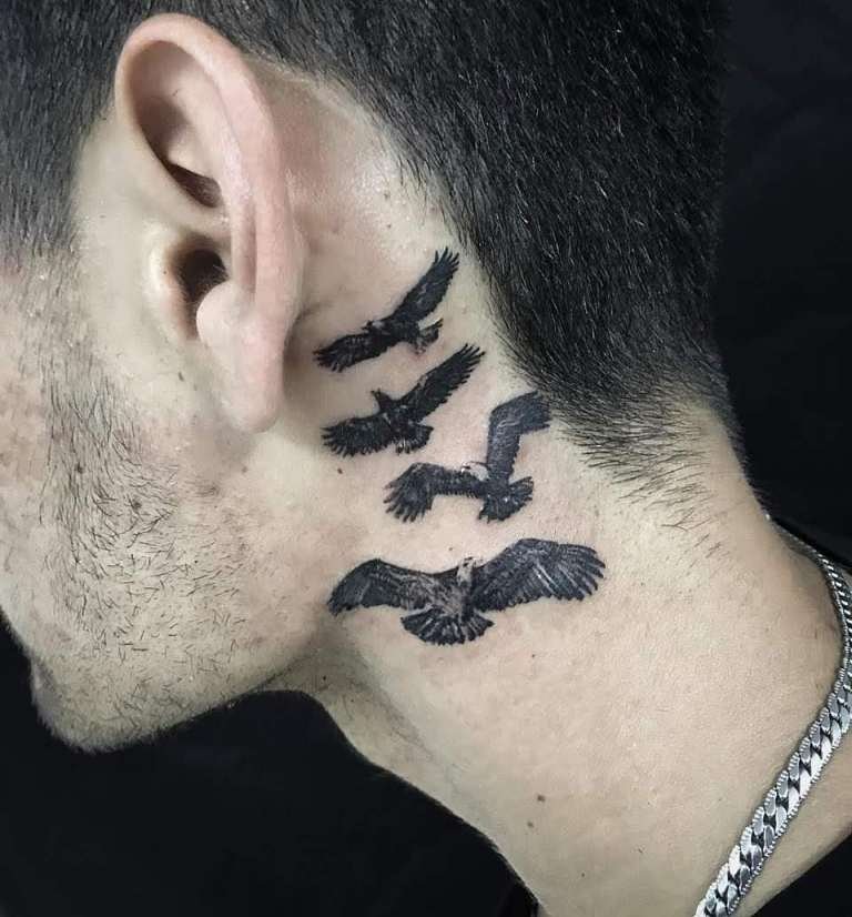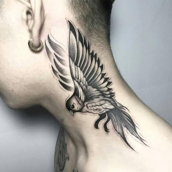 - Męskie tatuaże na szyi często przedstawiają dumne i spontaniczne ptaki. Te dumne stworzenia symbolizują wolność, inteligencję i transcendencję. Każdy ptak ma unikalne znaczenie: