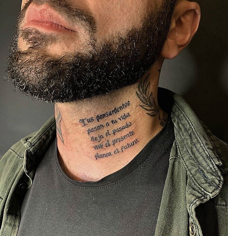 Nakładanie pigmentu na szyję mężczyzny jest uważane za trudniejsze niż w większości innych obszarów. Proces pigmentacji może powodować znaczny dyskomfort. Jednakże zdecydowana decyzja o umieszczeniu wzoru na szyi odzwierciedla determinację, niezgodność, oddanie kulturze tatuażu i chęć zaakceptowania bardziej wymagającego doświadczenia, niezależnie od ilości odczuwanego bólu.