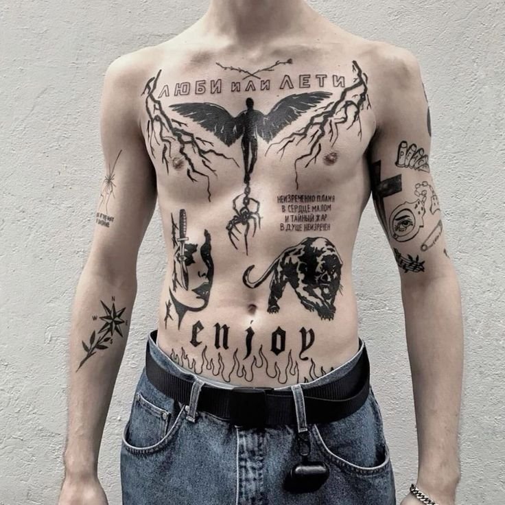 Tatuaże na brzuchu nie należą do najczęściej wybieranych przez mężczyzn – i właśnie dlatego mają w sobie coś wyjątkowego.