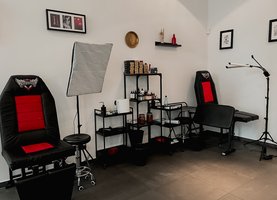 - Różne techniki tatuażu, w tym praca kreskowa, efekty cieni, rozmycia i przejścia kolorów.